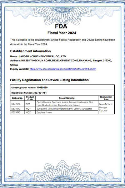 HONGCHEN CERTIFICATE FDA ISO9001 ISO13485 CE Occupational Health and Safety Management System Certificate Quality Management System Certificate Environmental Management System Certificate ISO14001